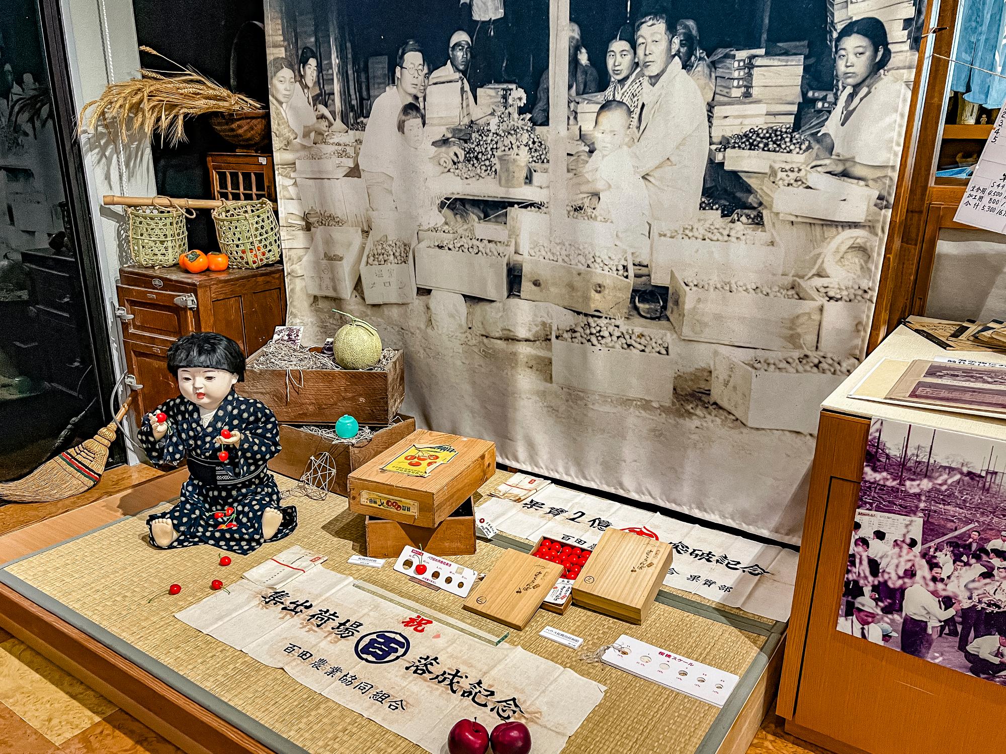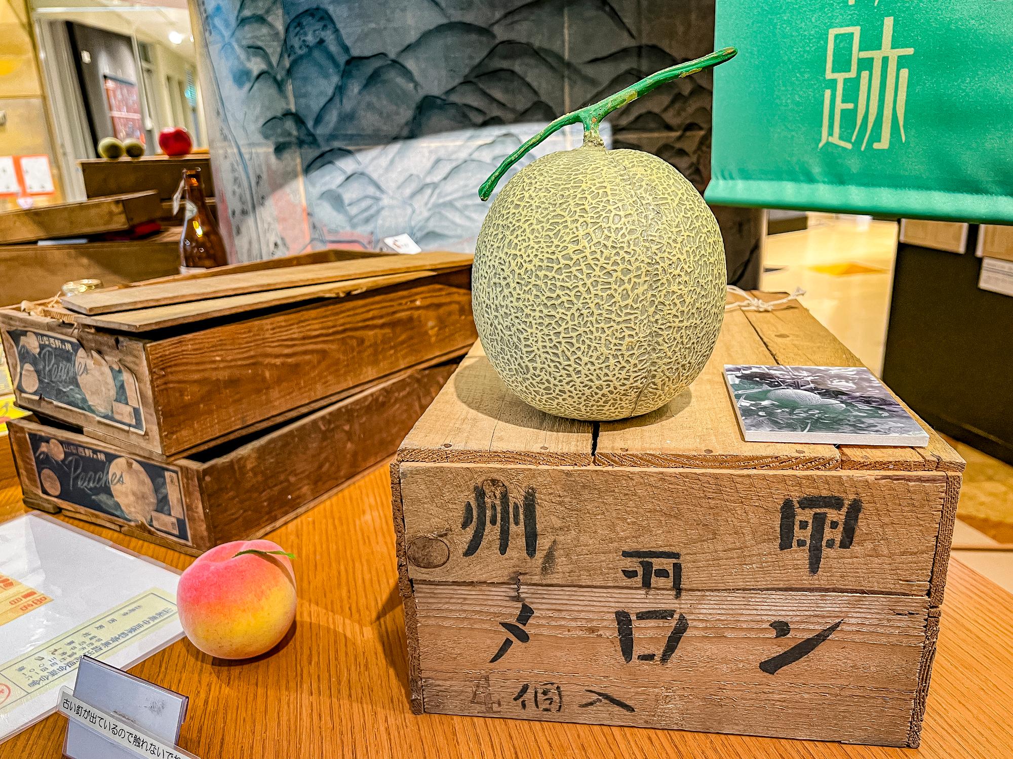 今ではイメージが湧きませんが、実はマスクメロンも栽培されていたとのこと。色んな果物が栽培されていたことにも、ちゃんとした理由があって「ヘェ〜」と感心することしきり。一時は盛んに行われていたメロン栽培が何故衰退していったのかも、来館されて資料を見てスタッフのお話を聞いていただければ納得すると思います。