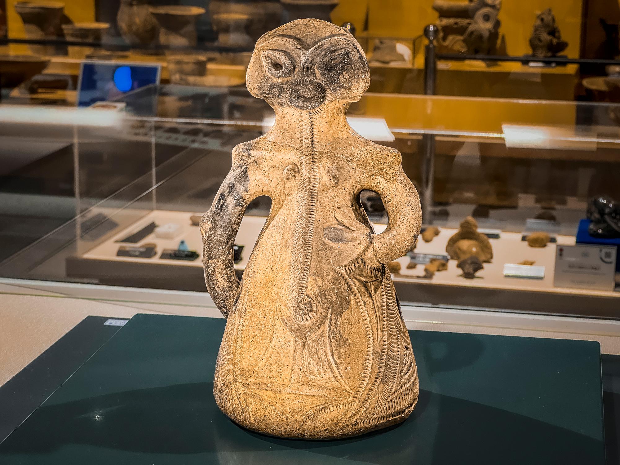 テーマ展は1階で開催。2階の展示室には市内の鋳物師屋遺跡より発掘された、貴重な出土品が多数展示されています。国の重要文化財に指定されている円錐型土偶「子宝の女神ラヴィ」や人体文様付有孔鍔付土器「ぴーす」などは必見。これもまたスタッフの方々の解説を聞きながら見学すると、何倍にも面白さが増し地元愛が深まることと思います。