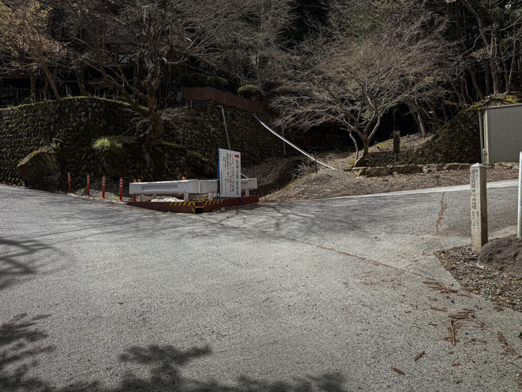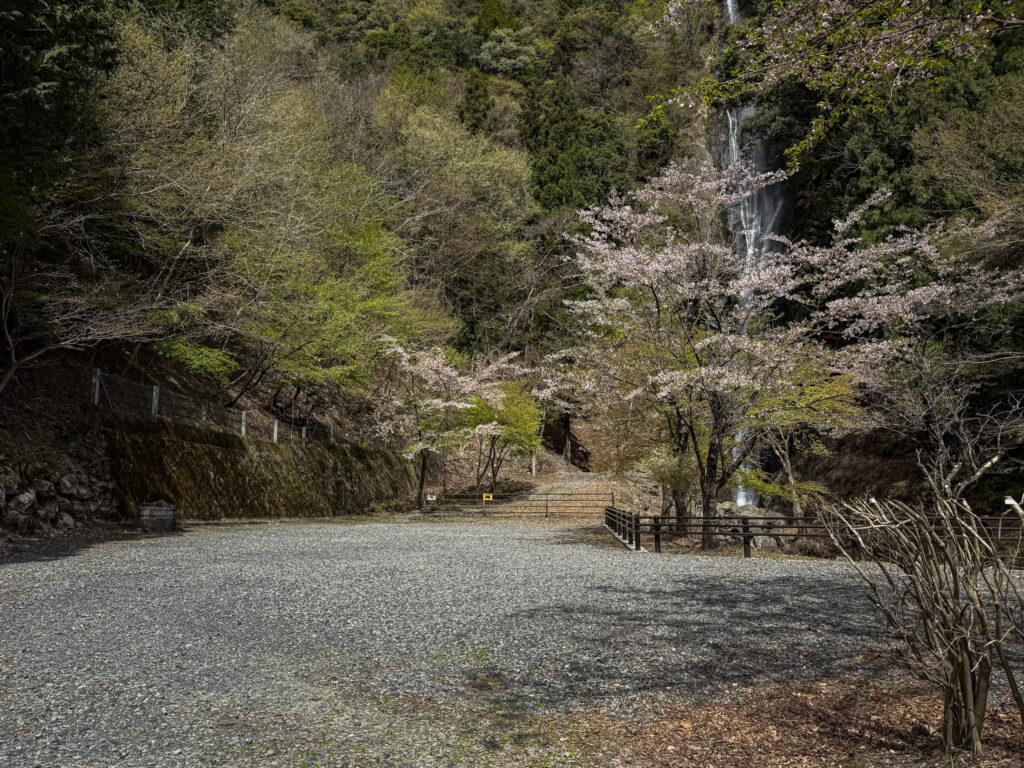 駐車場は砂利敷で広々で転回も楽です。もう少し早ければ満開の桜が楽しめましたね。来年タイミングが合えば再訪したいと思います。