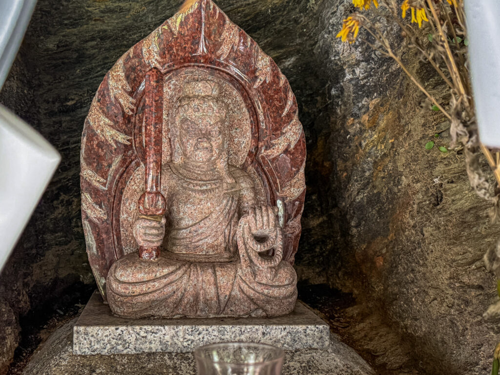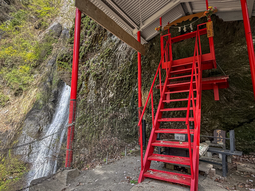 鉄製の階段を上がると岩をくり抜いた祠にお不動様が鎮座されえていました。