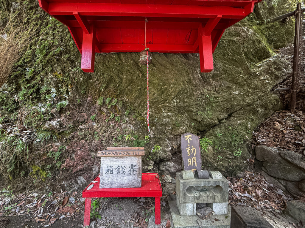 滝の脇には鳥居がありました。「不動明王」とあります。