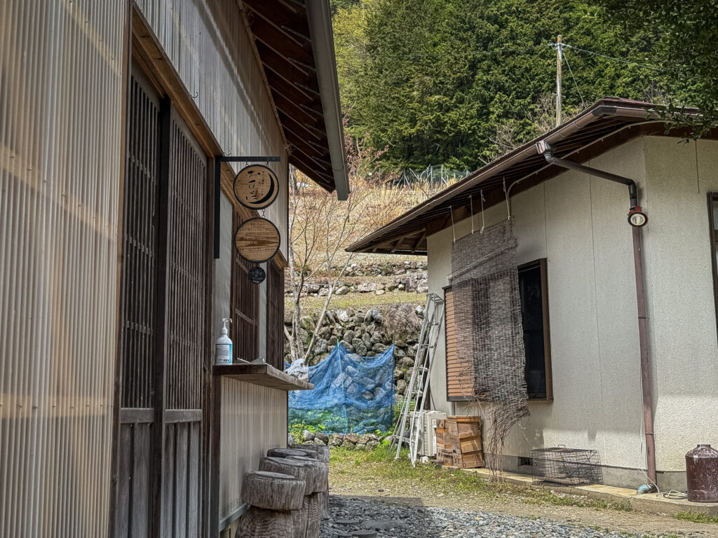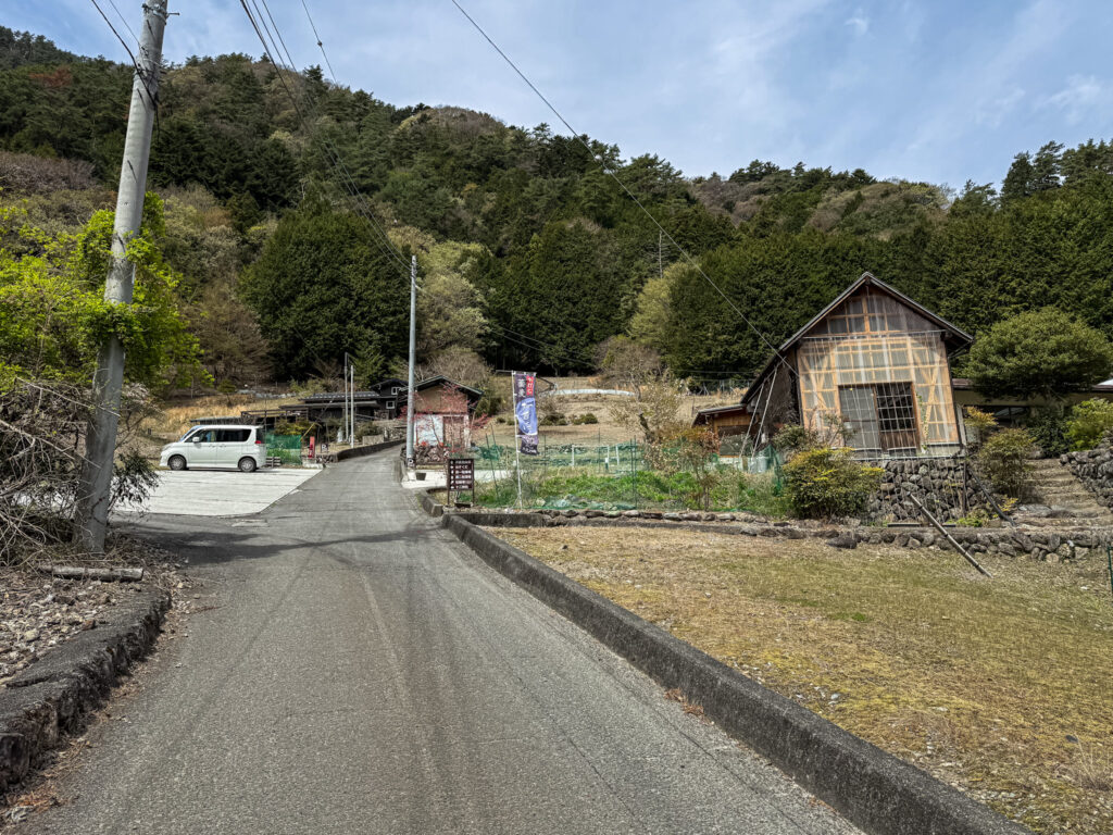 見神の滝を後にして、県道37号へ戻り更に奈良田方面に進みます。次の目的地は「手打ち蕎麦と山の食材 おすくに」さんです。西之宮地区に写真の幟と看板が目印。県道沿いに駐車場がありますが、そこからお店まで坂を上らないといけないので、足腰に不安のある方は、店舗向かいの駐車場まで上がることをオススメします。ただ、傾斜が急なので運転する方は注意が必要です。